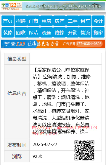 【爱家保洁公司单位家庭保洁】:空调清洗,加氟,维修,移机,擦玻璃,整体保洁,精细保洁,开荒保洁,钟点工,清洗:烟机清洗,地暖,地毯、门市门头牌子、水晶灯,棋牌室吸烟灯、家电清洗,大型烟机净化器清洗可以出清洗报告、布艺真皮沙发座椅清洗保养、换纱窗,窗帘清洗,美缝,化粪池,厨房管道,座便疏通,外墙清洗。单位物业托管,全屋收纳整理,搬家打包还原,擦玻璃团购有优惠 地址、电话:2666686,15930938843(微信同号) 保洁 |