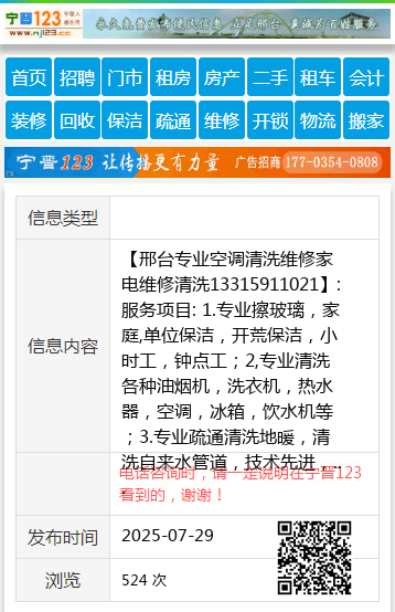 【邢台专业空调清洗维修家电维修清洗13315911021】:服务项目: 1.专业擦玻璃,家庭,单位保洁,开荒保洁,小时工,钟点工;2,专业清洗各种油烟机,洗衣机,热水器,空调,冰箱,饮水机等;3.专业疏通清洗地暖,清洗自来水管道,技术先进,干净彻底,更换分水器;4.专业管道疏通,疏通厨卫下水道,马桶;5.更换各种窗纱;6,开锁,换锁;7.甲醛检测,治理;8.食堂,饭店,酒店大型油烟机烟罩烟道净化器清洗,承接学校,单位等各种保洁。从业多年,收费合理 地址、电话:桥东5208787桥西2224399 |