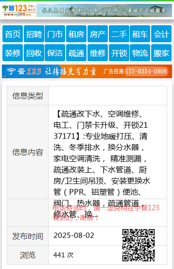 【疏通改下水、空调维修、电工、门禁卡升级、开锁2137171】:专业地暖打压、清洗、冬季排水,换分水器,家电空调清洗, 精准测漏,疏通改装上、下水管道、厨房/卫生间吊顶、安装更换水管(PPR、铝塑管)便池、阀门、热水器,疏通管道,修水管、换阀门、水龙头、水表,水钻打孔,卫生间、厨房、阳台免砸瓷砖做防水、修房(楼)顶疑难漏水,维修壁挂炉,太阳能热水器。专业电工,维修电脑、小家电,缝纫机,空调移机加氟,电焊工上门服务。升级门禁卡、电梯卡制作,开锁换锁,家庭保洁,老旧危墙房加固,修装学校商场中央空调,修装消防管道、装改各种消防喷头。 地址、电话:桥东19931956371桥西2137171 |