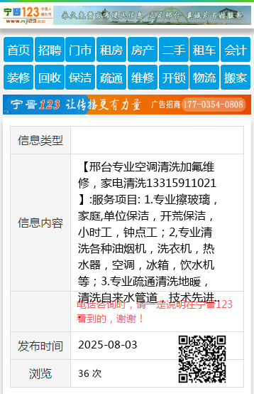 【邢台专业空调清洗加氟维修,家电清洗13315911021】:服务项目: 1.专业擦玻璃,家庭,单位保洁,开荒保洁,小时工,钟点工;2,专业清洗各种油烟机,洗衣机,热水器,空调,冰箱,饮水机等;3.专业疏通清洗地暖,清洗自来水管道,技术先进,干净彻底,更换分水器;4.专业管道疏通,疏通厨卫下水道,马桶;5.更换各种窗纱;6,开锁,换锁;7.甲醛检测,治理;8.食堂,饭店,酒店大型油烟机烟罩烟道净化器清洗,承接学校,单位等各种保洁。从业多年,收费合理 地址、电话:桥东5208787桥西2224399 |