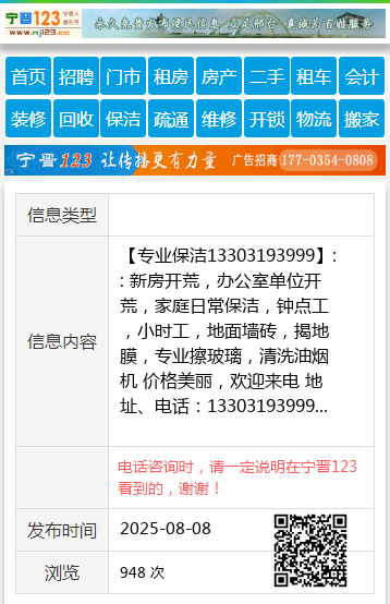 【阳光保洁专业擦玻璃 室内保洁 春节保洁火爆进行中】:阳光保洁专业擦玻璃 室内保洁 春节保洁火爆进行中 专业擦玻璃,家庭,单位保洁,日常保洁厨房除油,阳台 卫生间去污,地板清洗,地砖美缝,家庭,办公楼,银行,酒店,及大型商卖场日常保洁等 地址、电话:桥西桥东15831901150 地址、电话:桥西桥东15831901150
