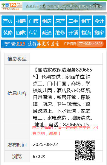 【丽洁家政保洁服务8206655】:长期提供;家庭单位,钟点工、门市门面,商场,学校幼儿园,酒店及办公场所,日常保洁,新居开荒,擦玻璃;厨房、卫生间清洗;疏通改装上、下水管道,家庭电工,水电改造,地暖清洗。 地址、电话:8206655 15531965177