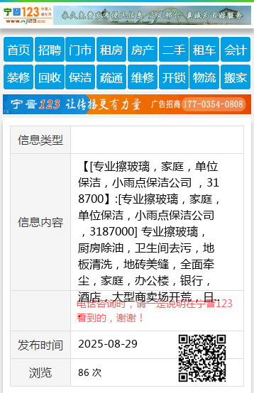 【[专业擦玻璃,家庭,单位保洁,小雨点保洁公司 ,318700】:[专业擦玻璃,家庭,单位保洁,小雨点保洁公司 ,3187000] 专业擦玻璃,厨房除油,卫生间去污,地板清洗,地砖美缝,全面牵尘,家庭,办公楼,银行,酒店,大型商卖场开荒,日常保洁等高精服务,玻璃幕墙清洗,大型高空广告牌匾清洗等高难度专业服务, 公司成立最早,品牌大,证照齐全,可开增值发票,规模庞大,技术力量雄厚,设备先进,欢迎新老客户参观或电话垂询。 地址、电话:3187000 |