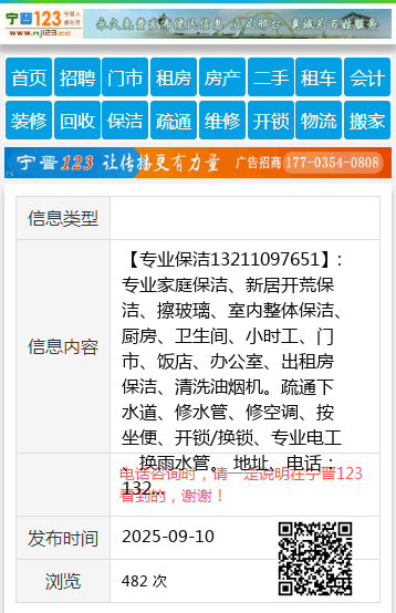 【专业保洁13211097651】:专业家庭保洁、新居开荒保洁、擦玻璃、室内整体保洁、厨房、卫生间、小时工、门市、饭店、办公室、出租房保洁、清洗油烟机。疏通下水道、修水管、修空调、按坐便、开锁/换锁、专业电工、换雨水管。 地址、电话:13211097651