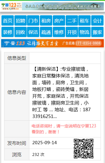 【清新保洁】:专业擦玻璃,家庭日常整体保洁,清洗地面,墙砖,厨房,卫生间,地板打蜡,瓷砖美缝,新居开荒,家庭保洁,开荒保洁擦玻璃,擦厨房卫生间,小时工 等 … 地址、电话:18733916251