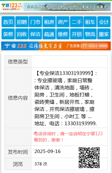 【专业保洁13303193999】:: 专业擦玻璃,家庭日常整体保洁,清洗地面,墙砖,厨房,卫生间,地板打蜡,瓷砖美缝,新居开荒,家庭保洁,开荒保洁擦玻璃,擦厨房卫生间,小时工 等 … 地址、电话:13303193999