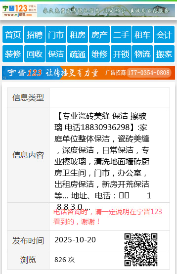 【专业瓷砖美缝 保洁 擦玻璃 电话18830936298】:家庭单位整体保洁,瓷砖美缝,深度保洁,日常保洁,专业擦玻璃,清洗地面墙砖厨房卫生间,门市,办公室,出租房保洁,新房开荒保洁 等… 地址、电话:☎️ 1 8 8 3 0 9 3 6 2 9 8