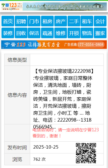 【专业保洁擦玻璃2222098】:专业擦玻璃,家庭日常整体保洁,清洗地面,墙砖,厨房,卫生间,地板打蜡,瓷砖美缝,新居开荒,家庭保洁,开荒保洁擦玻璃,擦厨房卫生间,小时工 等 … 地址、电话:2222098--13180566945 【电话咨询时,请一定说明在邢台123看到的,谢谢!】 |