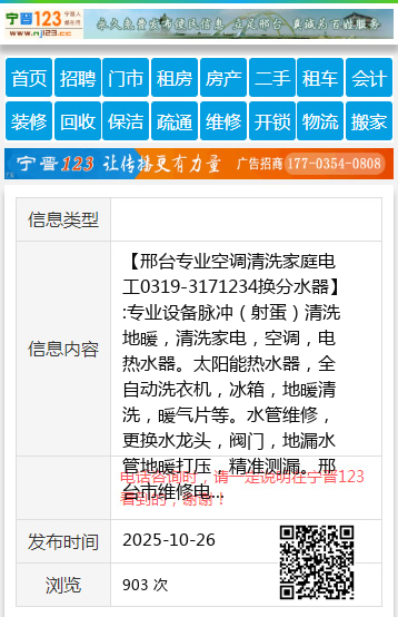 【邢台专业空调清洗家庭电工0319-3171234换分水器】:专业设备脉冲(射蛋)清洗地暖,清洗家电,空调,电热水器。太阳能热水器,全自动洗衣机,冰箱,地暖清洗,暖气片等。水管维修,更换水龙头,阀门,地漏水管地暖打压,精准测漏。邢台市维修电话0319-3171234 地址、电话:桥东3171234👉👉👉桥西15532933523 【电话咨询时,请一定说明在邢台123看到的,谢谢!】 |