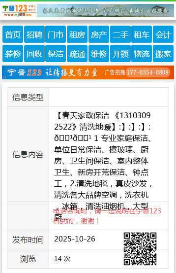 | 信息内容 | 【春天家政保洁 《13103092522》清洗地暖】:】:】:】:🌹🌹 1 专业家庭保洁、单位日常保洁、擦玻璃、厨房、卫生间保洁、室内整体卫生、新房开荒保洁、钟点工,2.清洗地毯,真皮沙发,清洗各大品牌空调,洗衣机,冰箱,清洗油烟机,大型厨房烟道清洗,可出检测报告。3 .清洗各种布艺沙发套。地板打蜡,地板砖美缝,4清洗地暖,采用先进的脉冲技术,干净彻底。清洗自来水管。5【换窗纱】。订做隐形窗纱,金刚网纱窗。等家庭活。开锁,换各种锁芯!欢迎新老客户来电! 地址、电话:13103092522 |
