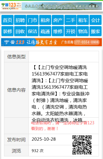 | 信息内容 | 【【上门专业空调地暖清洗15613967477家庭电工家电清洗】:【上门专业空调地暖清洗15613967477家庭电工家电清洗保】: 专业设备脉冲(射弹)清洗地暖,清洗家电,(清洗空调,清洗电热水器。太阳能热水器清洗,全自动洗衣机清洗,冰箱,地暖清洗,暖气片清洗按装维修)等。水管维修,更换水龙头,阀门,地漏水管地暖打压,精准测漏。邢台市维修电话15613967477 地址、电话:邢台市维修电话15613967477 |