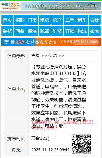 【专业地暖清洗打压,换分水器家庭电工3173133】:专业清洗地暖,暖气,自来水管道,电暖器,,用最先进的脉冲清洗技术,清洗干净彻底,效果明显,清洗过程干净卫生,射蛋深度清洗,效果立竿见影。长期疏通下水道,家庭电工,地暖清洗 地址、电话:邢台市3173133---13231925363 【电话咨询时,请一定说明在邢台123看到的,谢谢!】 |