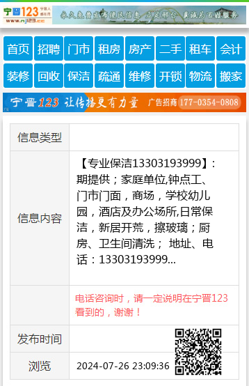 【专业保洁13303193999】:期提供;家庭单位,钟点工、门市门面,商场,学校幼儿园,酒店及办公场所,日常保洁,新居开荒,擦玻璃;厨房、卫生间清洗; 地址、电话:13303193999