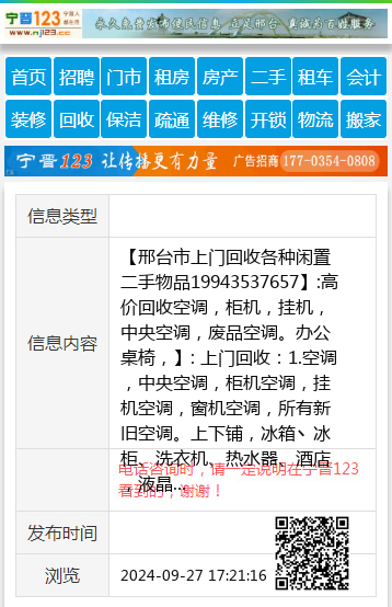 【邢台市上门回收各种闲置二手物品19943537657】:高价回收空调,柜机,挂机,中央空调,废品空调。办公桌椅,】: 上门回收:1.空调,中央空调,柜机空调,挂机空调,窗机空调,所有新旧空调。上下铺,冰箱丶冰柜、洗衣机、热水器、酒店,液晶电视。广告机,等各种家电.19943537657 地址、电话:19943537657 |