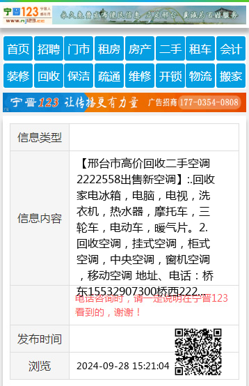 【邢台市专业回收二手空调2222131】:高价上门回收冰箱,空调,洗衣机,彩电,电动车1.空调,中央空调,柜机空调,挂机空调,窗机空调,所有新旧空调 地址、电话:邢台市区2222131--15630926681