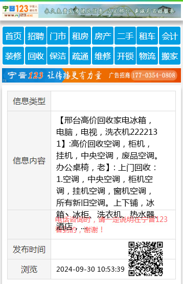 【邢台高价回收家电冰箱,电脑,电视,洗衣机2222131】:高价回收空调,柜机,挂机,中央空调,废品空调。办公桌椅,老】: 上门回收:1.空调,中央空调,柜机空调,挂机空调,窗机空调,所有新旧空调。上下铺,冰箱丶冰柜、洗衣机、热水器、酒店,液晶电视。广告机,等各种家电.2.家具,衣柜、沙发。单人床, 双人床,办公家具.3.电脑 ,台式电脑主机,显示器,笔记本,(学校及网吧淘汰机).4.饭店桌椅板凳,厨房用品.5.电动车,摩托车,电瓶,旧电动自行车, 地址、电话:2222131--15630926681 |