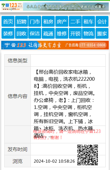 【邢台高价回收家电冰箱,电脑,电视,洗衣机2222008】:高价回收空调,柜机,挂机,中央空调,废品空调。办公桌椅,老】: 上门回收:1.空调,中央空调,柜机空调,挂机空调,窗机空调,所有新旧空调。上下铺,冰箱丶冰柜、洗衣机、热水器、酒店,液晶电视。广告机,等各种家电.2.家具,衣柜、沙发。单人床, 双人床,办公家具.3.电脑 ,台式电脑主机,显示器,笔记本,(学校及网吧淘汰机).4.饭店桌椅板凳,厨房用品.5.电动车,摩托车,电瓶,旧电动自行车, 地址、电话:2222008--15533191758 |