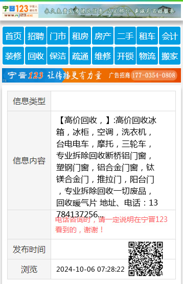 【高价回收,】:高价回收冰箱,冰柜,空调,洗衣机,台电电车,摩托,三轮车,专业拆除回收断桥铝门窗,塑钢门窗,铝合金门窗,钛镁合金门,推拉门,阳台门,专业拆除回收一切废品,回收暖气片 地址、电话:13784137256