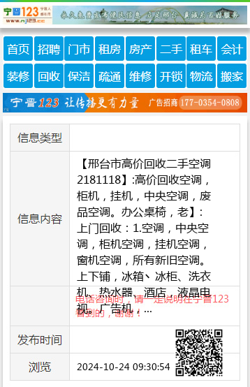 【邢台市高价回收二手空调2181118】:高价回收空调,柜机,挂机,中央空调,废品空调。办公桌椅,老】: 上门回收:1.空调,中央空调,柜机空调,挂机空调,窗机空调,所有新旧空调。上下铺,冰箱丶冰柜、洗衣机、热水器、酒店,液晶电视。广告机,等各种家电 地址、电话:桥东15532929556桥西2181118
