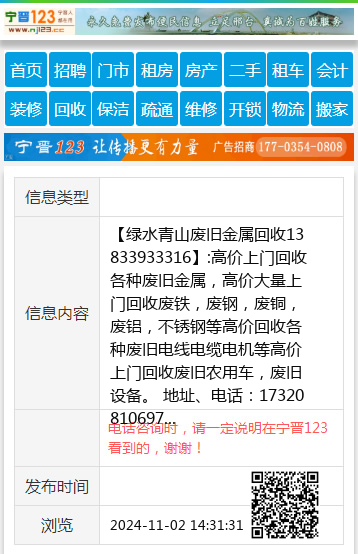 【绿水青山废旧金属回收13833933316】:高价上门回收各种废旧金属,高价大量上门回收废铁,废钢,废铜,废铝,不锈钢等高价回收各种废旧电线电缆电机等高价上门回收废旧农用车,废旧设备。 地址、电话:17320810697