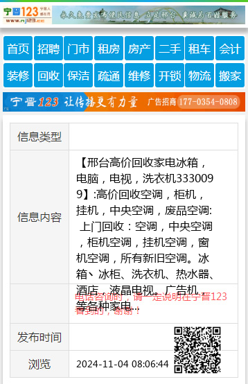 【邢台高价回收家电冰箱,电脑,电视,洗衣机3330099】:高价回收空调,柜机,挂机,中央空调,废品空调: 上门回收:空调,中央空调,柜机空调,挂机空调,窗机空调,所有新旧空调。冰箱丶冰柜、洗衣机、热水器、酒店,液晶电视。广告机,等各种家电..电脑 ,台式电脑主机,显示器,笔记本,..电动车,摩托车,电瓶,旧电动自行车, 地址、电话:3330099--13171756816 |