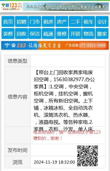 【邢台上门回收家具家电废旧空调,15630382977.办公家具】:1.空调,中央空调,柜机空调,挂机空调,窗机空调,所有新旧空调。上下铺,冰箱冰柜、全自动洗衣机、滚筒洗衣机、热水器、,液晶电视。等各种家电.2.家具,衣柜、沙发。单人床, 双人床,办公家具.3.电脑 ,台式电脑主机,显示器,笔记本,(学校单位及网吧淘汰机).4.饭店桌椅板凳,厨房用品.5.电动车,摩托车,电瓶.6.银行设备,饭店用品,蛋糕房用品,办公家具,单位企业设备, 《拆除代扔废旧家具。》 地址、电话:15630382977 上门回收 |