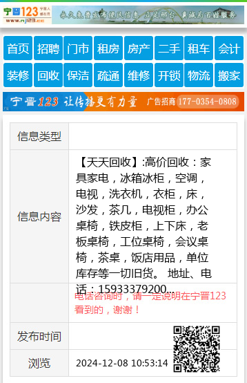 【天天回收】:高价回收:家具家电,冰箱冰柜,空调,电视,洗衣机,衣柜,床,沙发,茶几,电视柜,办公桌椅,铁皮柜,上下床,老板桌椅,工位桌椅,会议桌椅,茶桌,饭店用品,单位库存等一切旧货。 地址、电话:15933379200