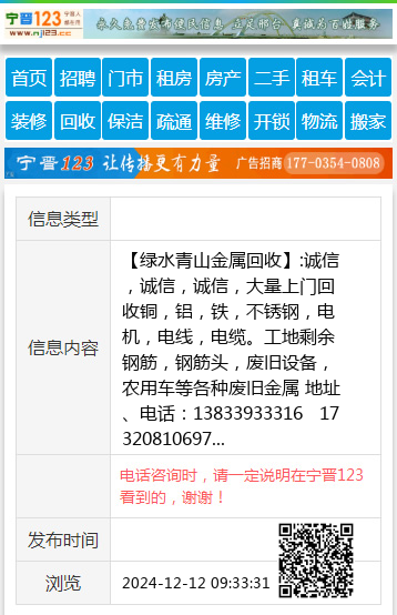 【绿水青山金属回收】:诚信,诚信,诚信,大量上门回收铜,铝,铁,不锈钢,电机,电线,电缆。工地剩余钢筋,钢筋头,废旧设备,农用车等各种废旧金属 地址、电话:13833933316 17320810697
