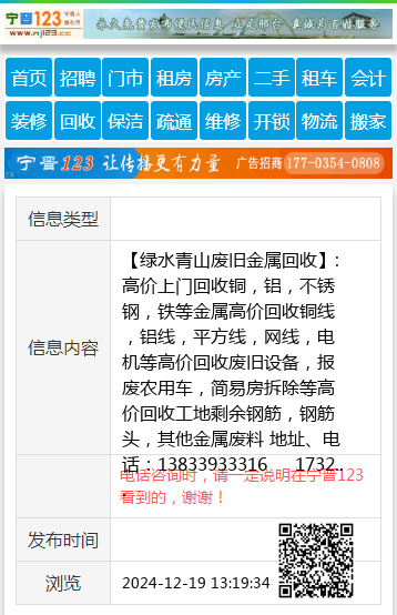 【绿水青山废旧金属回收】:高价上门回收铜,铝,不锈钢,铁等金属高价回收铜线,铝线,平方线,网线,电机等高价回收废旧设备,报废农用车,简易房拆除等高价回收工地剩余钢筋,钢筋头,其他金属废料 地址、电话:13833933316 17320810697