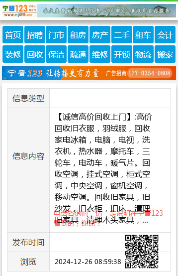 【诚信高价回收上门】:高价回收旧衣服,羽绒服,回收家电冰箱,电脑,电视,洗衣机,热水器,摩托车,三轮车,电动车,暖气片。回收空调,挂式空调,柜式空调,中央空调,窗机空调,移动空调。回收旧家具,旧沙发,旧衣柜,旧床,清理旧家具,清理木头家具,清理木制地板,回收旧门窗,塑钢门窗,铝合金门窗,断桥铝门窗,拆卸各种门窗一切废旧物资回收办公家具,网吧清空,饭店用品,桌椅板凳,厨房用品,制冷设备,拆除门窗,0319-3826650 13229890839 同步 地址、电话:开元路18333985418 地址、电话:开元路13229890839 |
