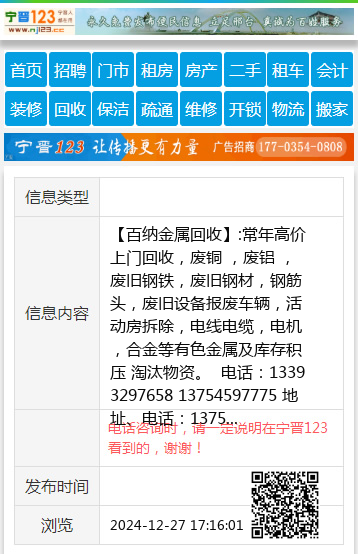 【百纳金属回收】:常年高价上门回收,废铜 ,废铝 ,废旧钢铁,废旧钢材,钢筋头,废旧设备报废车辆,活动房拆除,电线电缆,电机,合金等有色金属及库存积压 淘汰物资。 电话:13393297658 13754597775 地址、电话:13754597775 13393297658 上门回收