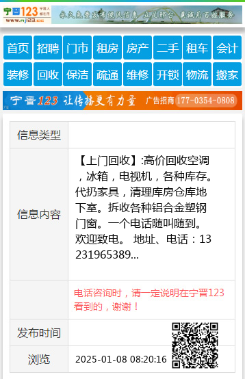 【上门回收】:高价回收空调,冰箱,电视机,各种库存。代扔家具,清理库房仓库地下室。拆收各种铝合金塑钢门窗。一个电话随叫随到。欢迎致电。 地址、电话:13231965389