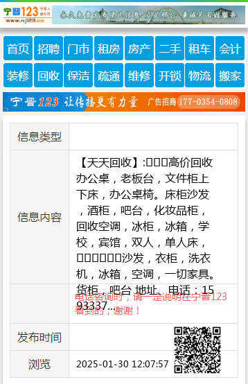 【天天回收】:♥♥♥高价回收办公桌,老板台,文件柜上下床,办公桌椅。床柜沙发,酒柜,吧台,化妆品柜,回收空调,冰柜,冰箱,学校,宾馆,双人,单人床,♥♥♥♥♥♥沙发,衣柜,洗衣机,冰箱,空调,一切家具。货柜,吧台 地址、电话:15933379200