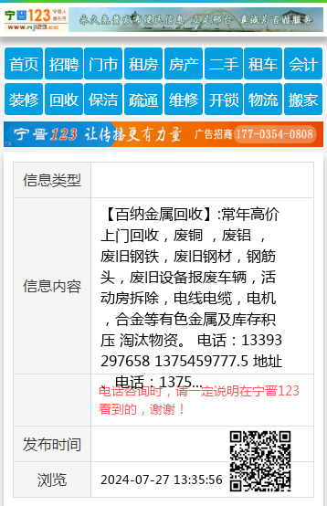 【百纳金属回收】:常年高价上门回收,废铜 ,废铝 ,废旧钢铁,废旧钢材,钢筋头,废旧设备报废车辆,活动房拆除,电线电缆,电机,合金等有色金属及库存积压 淘汰物资。 电话:13393297658 1375459777.5 地址、电话:1375459777.5/ 13393297658 上门回收