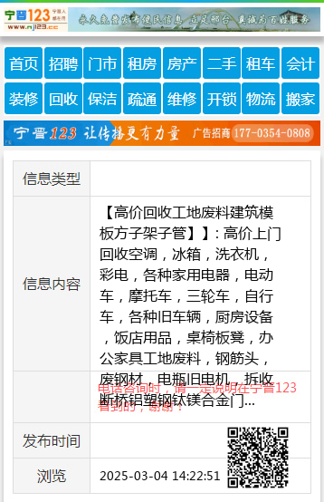 【高价回收工地废料建筑模板方子架子管】】: 高价上门回收空调,冰箱,洗衣机,彩电,各种家用电器,电动车,摩托车,三轮车,自行车,各种旧车辆,厨房设备,饭店用品,桌椅板凳,办公家具工地废料,钢筋头,废钢材,电瓶旧电机,拆收断桥铝塑钢钛镁合金门窗,暖气片铁管道,15531966955, 同号,欢迎致电或加 咨询服务 地址、电话:13132468239地址、电话:15531966955 地址、电话:15531966955 |