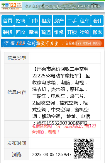 免责声明:本栏目信息由网友自行发布,邢台123不承担任何责任!提高警惕,谨防诈骗!做推广、做信息置顶!请加邢台123客服微信:cnxingtai