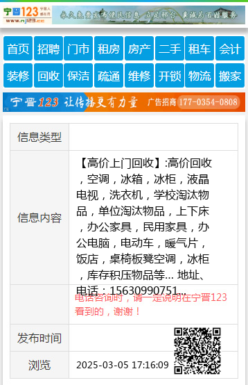 【高价上门回收】:高价回收,空调,冰箱,冰柜,液晶电视,洗衣机,学校淘汰物品,单位淘汰物品,上下床,办公家具,民用家具,办公电脑,电动车,暖气片,饭店,桌椅板凳空调,冰柜,库存积压物品等… 地址、电话:15630990751