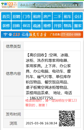 【邢台上门回收家具家电废旧空调,一切二手废旧物资,办公家具】: 1.回收家电冰箱,电脑,电视,洗衣机,热水器,摩托车,三轮车,电动车,暖气片。2.回收空调,挂式空调,柜式空调,中央空调,窗机空调,移动空调。3.家具,衣柜、沙发。单人床, 双人床,办公家具.4.回收门窗,塑钢门窗,铝合金门窗,断桥铝门窗,拆卸各种门窗一切废旧物资5.回收办公家具,网吧清空,饭店用品,桌椅板凳,厨房用品,制冷设备 地址、电话:15660819320 上门回收