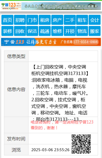【上门回收空调,中央空调柜机空调挂机空调3173133】:回收家电冰箱,电脑,电视,洗衣机,热水器,摩托车,三轮车,电动车,暖气片。2.回收空调,挂式空调,柜式空调,中央空调,窗机空调,移动空调。 地址、电话:邢台市3173133---13231925363