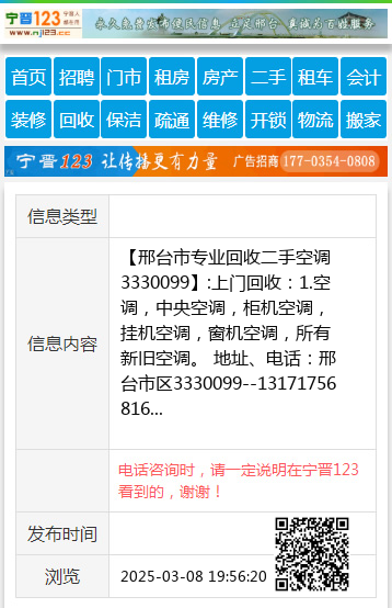 【诚信上门高价回收】:回收家电冰箱,电脑,电视,洗衣机,热水器,摩托车,三轮车,电动车,暖气片。回收空调,挂式空调,柜式空调,中央空调,窗机空调,移动空调。回收旧家具,旧沙发,旧衣柜,旧床,清理旧家具,清理木头家具,清理木制地板,回收旧门窗,塑钢门窗,铝合金门窗,断桥铝门窗,拆卸各种门窗一切废旧物资回收办公家具,网吧清空,饭店用品,桌椅板凳,厨房用品,制冷设备,拆除门窗,0319-3826650 13229890839微信同步 地址、电话:开元路18333985418 地址、电话:18333985418
