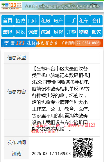 【坐标邢台市区大量回收各类手机电脑笔记本数码相机】:我公司专业回收各类手机电脑笔记本数码相机单反DV等各种镜头好的收,坏的收,烂的也收专业清理各种大小工作室、公司、教育、医疗、等家里不用的闲置淘汰数码设备!我们设有专业验机团队不忽悠不乱报一机一况一价格全天24小时在线评估,同城仅需一个电话我们即可安排附近收货人员即可上门拿货欢迎联系我们!一店地址:邢台市襄都区丰仓街芙蓉花园楼下二店地址:邢台市信都区守敬路与中华路交叉口科技大厦斜对过客服:0319-3138861/13292159802 地址、电话:0319-3138861/13292159802 |