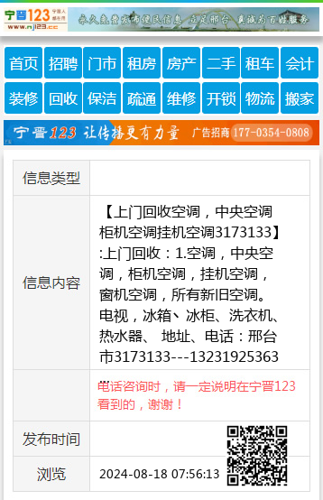 【邢台旧货回收】:: 高价回收空调,柜机,挂机,中央空调,废品空调。办公桌椅,老】: 上门回收:1.空调,中央空调,柜机空调,挂机空调,窗机空调,所有新旧空调。上下铺,冰箱丶冰柜、洗衣机、热水器、酒店,液晶电视。广告机,等各种家电.2.家具,衣柜、沙发。单人床, 双人床,办公家具.3.电脑 ,台式电脑主机,显示器,笔记本,(学校及网吧淘汰机).4.饭店桌椅板凳,厨房用品.5.电动车,摩托车,电瓶,旧电动自行车 地址、电话:13831933057