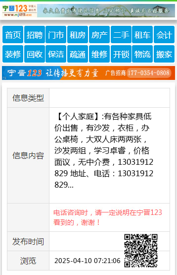 【个人家庭】:有各种家具低价出售,有沙发,衣柜,办公桌椅,大双人床两两张,沙发两组,学习卓睿,价格面议,无中介费,13031912829 地址、电话:13031912829
