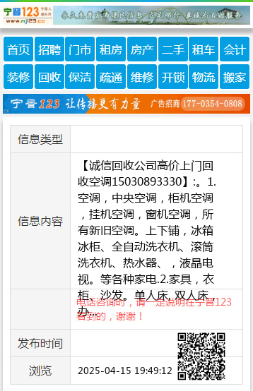 【诚信回收公司高价上门回收空调15030893330】:。1.空调,中央空调,柜机空调,挂机空调,窗机空调,所有新旧空调。上下铺,冰箱冰柜、全自动洗衣机、滚筒洗衣机、热水器、,液晶电视。等各种家电.2.家具,衣柜、沙发。单人床, 双人床,办公家具.3.电脑 ,台式电脑主机,显示器,笔记本,(学校单位及网吧淘汰机).4.饭店桌椅板凳,厨房用品.5.电动车,摩托车,电瓶.6.银行设备,饭店用品,蛋糕房用品,办公家具,单位企业设备, 《拆除代扔废旧家具 地址、电话:15030893330 |