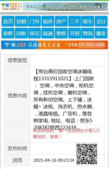 【邢台高价回收空调冰箱电视13315911021】:上门回收: 空调,中央空调,柜机空调,挂机空调,窗机空调,所有新旧空调。上下铺,冰箱丶冰柜、洗衣机、热水器、,液晶电视。广告机,等各种家电. 地址、电话:桥东5208787桥西2224399