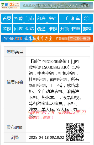 【诚信回收公司高价上门回收空调15030893330】:1.空调,中央空调,柜机空调,挂机空调,窗机空调,所有新旧空调。上下铺,冰箱冰柜、全自动洗衣机、滚筒洗衣机、热水器、,液晶电视。等各种家电.2.家具,衣柜、沙发。单人床, 双人床,办公家具.3.电脑 ,台式电脑主机,显示器,笔记本,(学校单位及网吧淘汰机).4.饭店桌椅板凳,厨房用品.5.电动车,摩托车,电瓶.6.银行设备,饭店用品,蛋糕房用品,办公家具,单位企业设备, 《拆除代扔废旧家具。》 地址、电话:15030893330 |