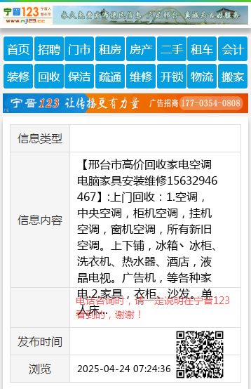 【邢台市高价回收家电空调电脑家具安装维修15632946467】:上门回收:1.空调,中央空调,柜机空调,挂机空调,窗机空调,所有新旧空调。上下铺,冰箱丶冰柜、洗衣机、热水器、酒店,液晶电视。广告机,等各种家电.2.家具,衣柜、沙发。单人床, 双人床,办公家具.3.电脑 ,台式电脑主机,显示器,笔记本,(学校及网吧淘汰机).4.饭店桌椅板凳,厨房用品.5.电动车,摩托车,电瓶 地址、电话:邢台市高价回收家电空调电脑家具安装维修15632946467 |
