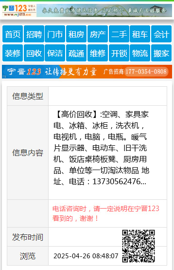 【高价回收】:空调、家具家电、冰箱、冰柜,洗衣机,电视机,电脑,电瓶。暖气片显示器、电动车、旧干洗机、饭店桌椅板凳、厨房用品、单位等一切淘汰物品 地址、电话:13730562476