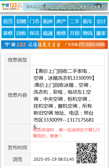 【邢台高价回收空调冰箱彩电13315911021】:回收家电冰箱,电脑,电视,洗衣机,热水器,摩托车,三轮车,电动车,暖气片。2.回收空调,挂式空调,柜式空调,中央空调,窗机空调,移动空调 地址、电话:桥东5208787桥西2224399