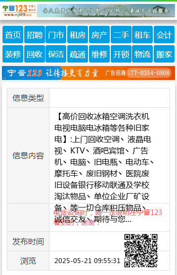 【: 1.回收家电冰箱,高脑,电视,洗衣机,热水器,摩托车,三】:: 1.回收家电冰箱,电脑,电视,洗衣机,热水器,摩托车,三轮车,电动车,暖气片。2.回收空调,挂式空调,柜式空调,中央空调,窗机空调,移动空调。3.回收旧家具,旧沙发,旧衣柜,旧床垫,旧床,清理旧家具,清理木头家具,清理木制地板,4.回收旧门窗,塑钢门窗,铝合金门窗,断桥铝门窗,拆卸各种门窗一切废旧物资5.回收办公家具,网吧清空,饭店用品,桌椅板凳,厨房用品,制冷设备 地址、电话:13293119606